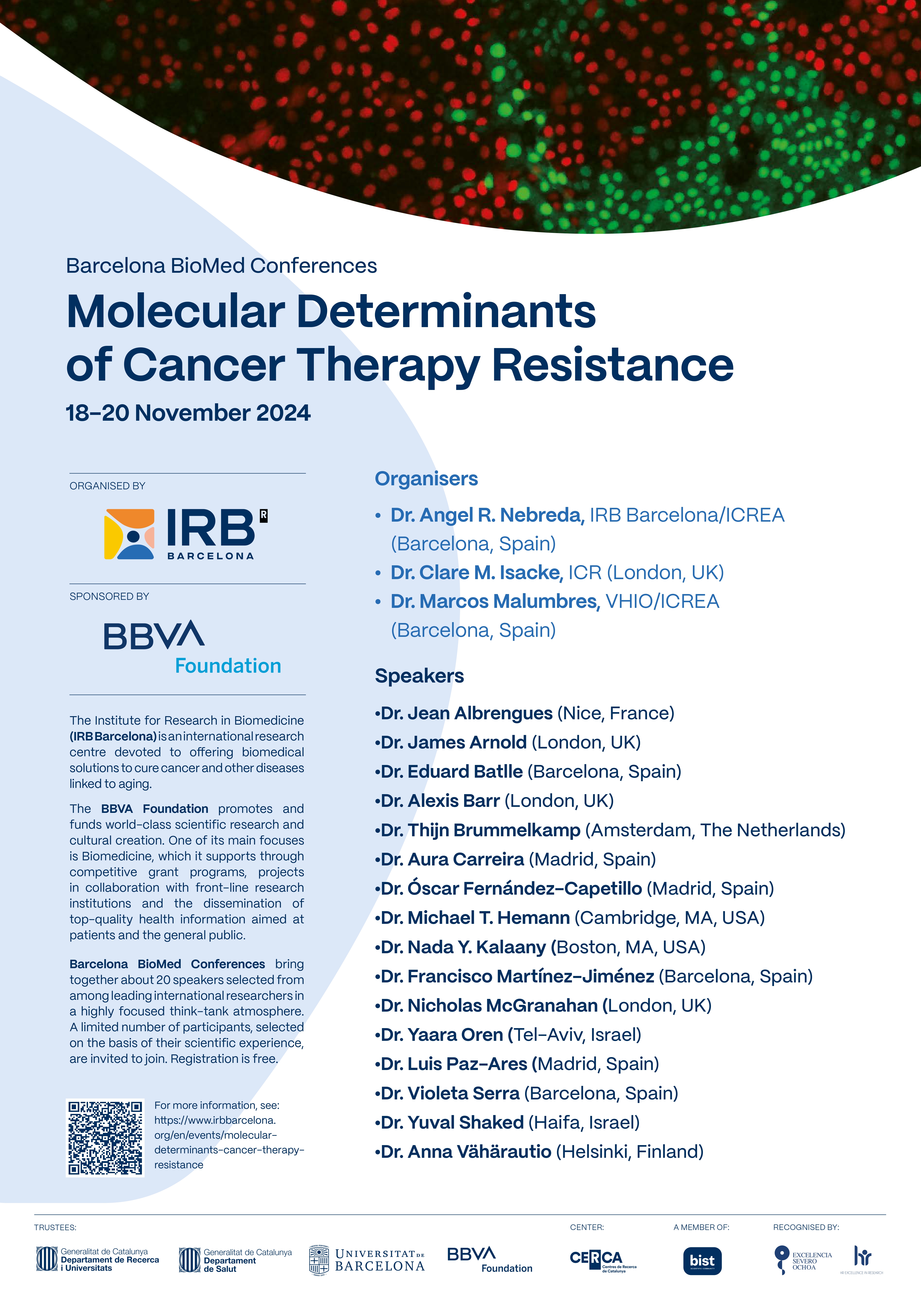 There is no registration fee for this conference, but the number of participants is limited, with a number of seats saved for IRB Barcelona alumni. Previous registration is required.