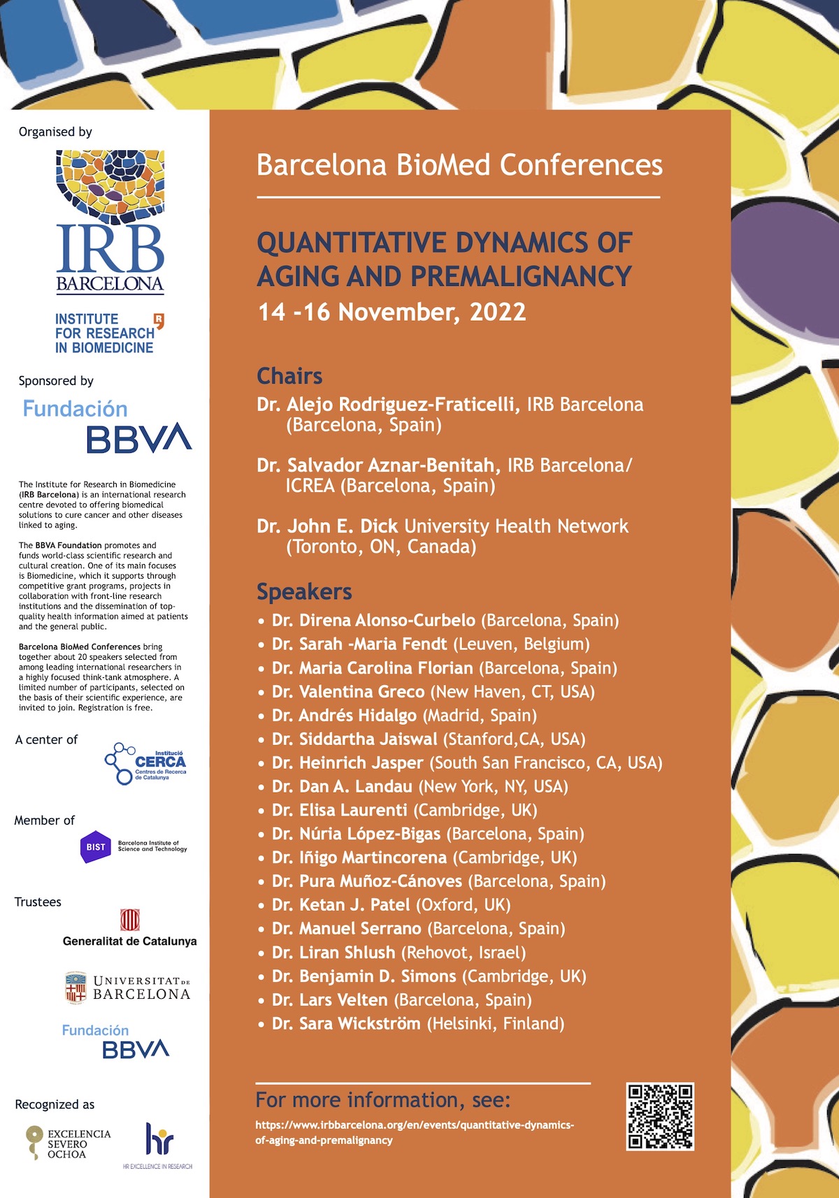 The BARCELONA BIOMED CONFERENCE Quantitative dynamics of aging and premalignancy will be placed at the Casa Convalescència in the heart of Barcelona. Talks will take place in the Aula Magna.