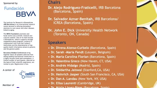 9.00 Welcome by Dr. Raúl Méndez (IRB Barcelona, Vice Director) and organizers (Dr. Alejo Rodriguez-Fraticelli, Dr. John E. Dick, Dr. Salvador Aznar-Benitah)