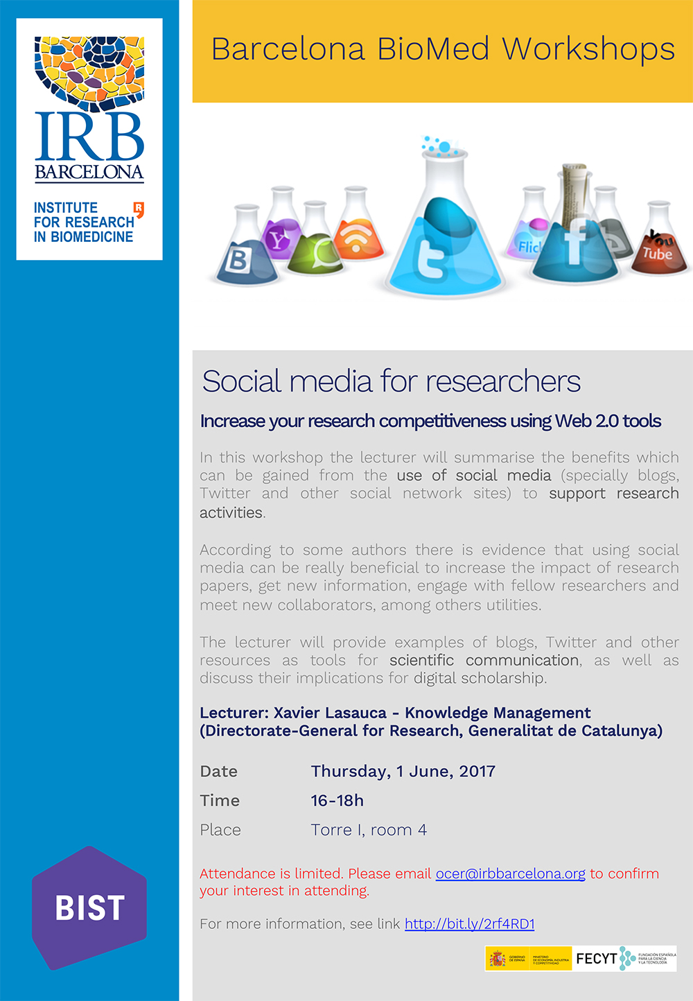 Attendance is limited. Please email ocer@irbbarcelona.org to confim your interest in attending.