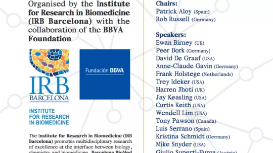 An IRB Barcelona and BBVA Foundation conference that will provide an interdisciplinary forum for researchers interested in interactions, pathways, networks and drug design to meet and discuss the latest advances in this field.