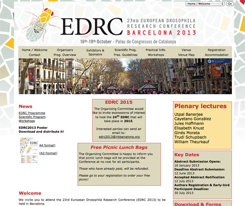 Del 16 al 19 d’octubre, més de 700 investigadors internacionals assistiran a Barcelona al congrés biennal European Drosophila Research Conference, al Palau de Congressos de la ciutat comtal. Es tracta del major congrés europeu, amb 7 conferències plenàries, 300 xerrades, 20 sessions monogràfiques i 400 pòsters, dedicat a la recerca bàsica i biomèdica que té com a model d’estudi la mosca de la fruita (Drosophila melanogaster).