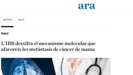 Un equip de l’IRB Barcelona, liderat per l’investigador ICREA Dr. Roger Gomis, ha revelat el mecanisme pel qual la proteïna MAF incrementa el risc de metàstasi en pacients amb càncer de mama. Aquest descobriment és un pas crucial en la comprensió de les bases moleculars de la metàstasi i té implicacions clíniques rellevants per al tractament.