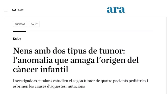 "El treball no només aclareix l'origen de les patologies tan improbables d'aquests pacients, sinó que millora la comprensió dels càncers pediàtrics en general. En el futur, aquest coneixement podria contribuir a determinar el tractament i seguiment dels pacients joves", explica el Dr. Abel González-Pérez.