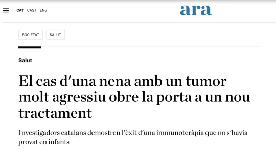 Tot i que poden considerar-se rars, molts tipus de càncer infantil continuen posant en risc la vida de molts nens i encara no es disposa de tractaments personalitzats efectius. El tumor rabdoide n’és un exemple, i pot aparèixer en diferents teixits i òrgans. Cada any es registren una mitjana de 12 casos al nostre país. Encara que la seva incidència és baixa, es tracta d'un càncer molt agressiu que sol aparèixer una mica abans dels dos anys. L'estudi presenta el cas d'una nena que tenia tan sols cinc mesos quan li van diagnosticar aquest tipus de tumor maligne en el ronyó. L'equip assistencial de l'Hospital Sant Joan de Déu de Barcelona li va extirpar el tumor mitjançant cirurgia i va començar a tractar-la amb quimioteràpia i radioteràpia, i després també amb immunoteràpia. Va ser just en aquesta fase quan l’IRB Barcelona i el Centre Nacional d'Anàlisi Genòmica (CNAG) van començar a fer un seguiment exhaustiu, cèl·lula a cèl·lula, de la resposta immunitària de la pacient, amb l'objectiu de comprendre els factors que han contribuït a l'èxit del tractament. Els resultats s’han publicat en la revista Annals of Oncology.