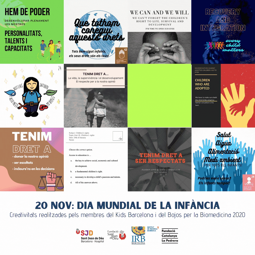 Tant l'Institut de Recerca Sant Joan de Déu (IRSJD) com l’Institut de Recerca Biomèdica (IRB Barcelona), disposen de dos grups de joves que reben formació i participen en activitats vinculades amb la recerca. En el primer cas, es tracta del grup KIDS Barcelona fundat al 2015, i que està format tant per pacients de la institució com per infants que no han patit cap malaltia, amb la finalitat d’ajudar a què els projectes de la institució incloguin la perspectiva dels joves. Entre els projectes en els que participen els KIDS Barcelona, destaquem els relacionats amb els assajos clínics i la innovació.