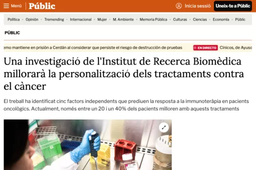 Research Programme (field_news_research_programme) Tots els programesEnvelliment i MetabolismeCàncerServeis i Equipaments PrincipalsMecanismes de Malaltia Research Group (field_news_research_group) L'IRB Barcelona als mitjans12 set. 2024 Públic - Una investigació de l'Institut de Recerca Biomèdica millorarà la personalització dels tractaments contra el càncer L'IRB Barcelona als mitjans10 set. 2024 Ara - Ràdio Pati: concerts per acompanyar la radioteràpia contra la metàstasi L'IRB Barcelona als mitjans4 set. 2024 RTVE - Música contra el cancer des del pati de l'Anna L'IRB Barcelona als mitjans22 ag. 2024 La Vanguàrdia - Un algoritmo “detective” predice los mejores fármacos para trastornos genéticos y cáncer L'IRB Barcelona als mitjans18 jun 2024 Un proyecto pionero reúne en Barcelona a oncólogos y científicos en un mismo laboratorio para acelerar la lucha contra el cáncer - El Periodico L'IRB Barcelona als mitjans18 jun 2024 Éxito Rotundo en el 18º Torneo de Golf y Cena Solidaria XAP Constant - Sport L'IRB Barcelona als mitjans18 jun 2024 Qué fue de los alumnos 10 de Selectividad de hace una década - El País L'IRB Barcelona als mitjans18 jun 2024 Los padres también influyen en la flora intestinal de sus bebés - ABC L'IRB Barcelona als mitjans18 jun 2024 New simplified DNA model for advanced computational simulations - PHYS Paginació Primera pàgina First Pàgina anterior < Pàgina 1 Pàgina 2 Pàgina 3 Pàgina actual 4 Pàgina 5 Pàgina 6 Pàgina 7 Pàgina 8 Pàgina 9 … Pàgina següent > Última pàgina Last