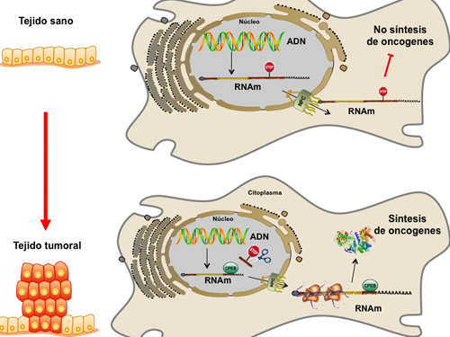 Els investigadores descriuen que CPEB1 retalla una regió molt específica dels RNA (els RNA són les molècules que duen la informació dels gens per a sintetitzar proteïnes). Aquesta regió que retalla CPBE1 conté gran part dels senyals que determinen si aquest RNA ha de traduir-se o no a proteïna. “CPEB1 “treu els frens” a centenars de molècules de RNA que promouen desdiferenciació i proliferació cel·lular i permeten que es tradueixin a proteïna, però a més de retallar-li els frens al nucli, acompanya al RNA fins el citoplasma de la cèl·lula, on accelera la producció d’aquestes proteïnes”, explica l’investigador sènior de l’article Raúl Méndez, cap del grup “Control Traduccional del Cicle Cel·lular i Diferenciació” a l’IRB Barcelona.