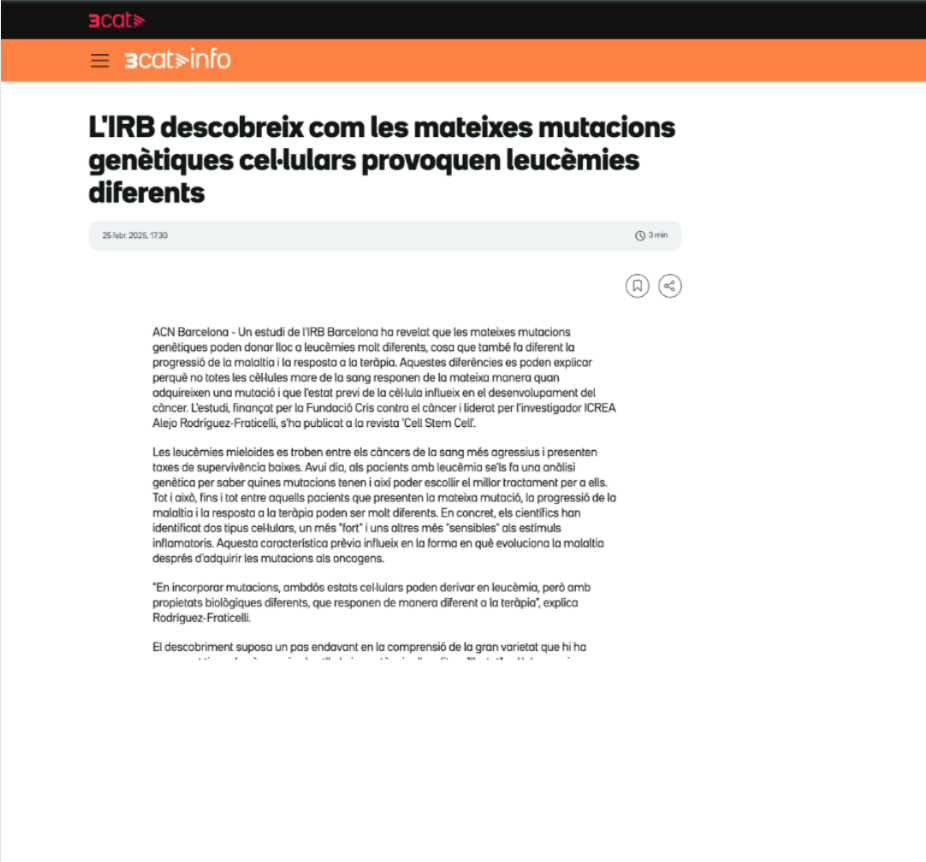 3Cat - L'IRB descobreix com les mateixes mutacions genètiques cel·lulars provoquen leucèmies diferents
