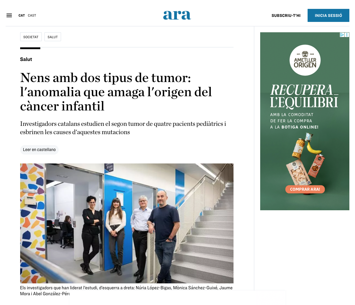 Ara - Nens amb dos tipus de tumor: l'anomalia que amaga l'origen del càncer infantil