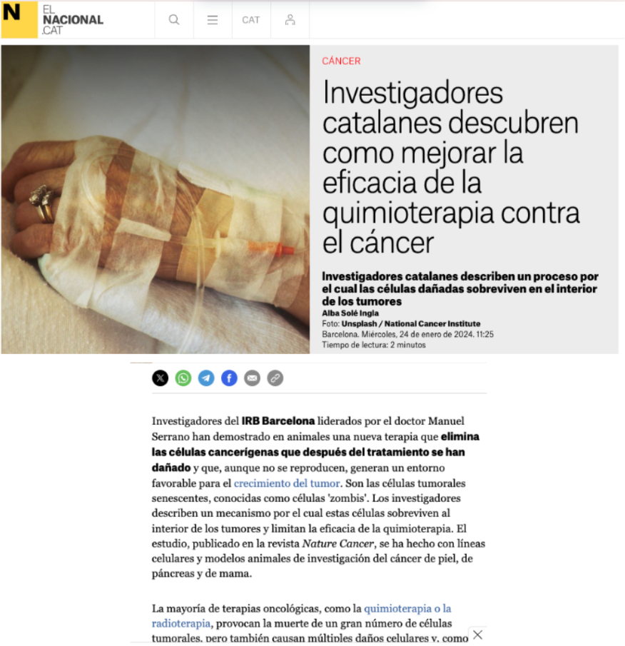 El Nacional - Investigadors catalans descobreixen com millorar l'eficàcia de la quimioteràpia contra el càncer