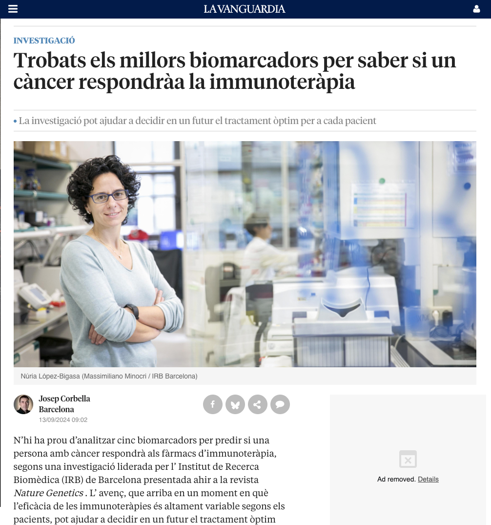 La Vanguàrdia - Trobats els millors biomarcadors per saber si un càncer respondrà a la immunoteràpia