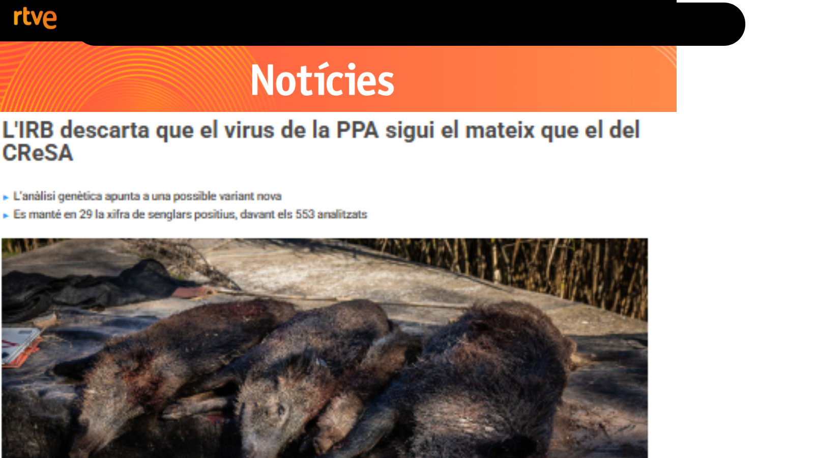 RTVE - L'IRB descarta que el virus de la PPA sigui el mateix que el del CReSA