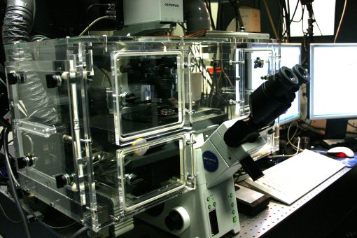The Olympus ScanR enables fully automated inverted microscope for imaging wide areas, multiwell plates and multipositions, automated live imaging with temperature incubation and CO2 control, superstable illumination for reproducible and high content image analysis, and Total internal reflection microscopy (TIRF) for high contrast imaging at surfaces.