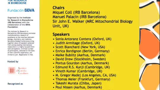 The BARCELONA BIOMED CONFERENCE on Transporters and other Molecular Machines will be hosted by the Institut d'Estudis Catalans (IEC) in the heart of downtown Barcelona. Talks will take place in the Sala Prat de Riba.