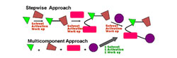The process of drug discovery relies on the production of pure bioactive compounds in a manner that is robust, reproducible and that yields large quantities. Synthesis techniques, such as MCR, play a fundamental role in drug discovery research. Though current organic synthesis methods are sophisticated enough to enable researchers to prepare any compound, no matter how complex, they usually require a series of steps, up to 80 or more, and this makes the process expensive and extraordinarily slow. The advantage of MCR is that it will ideally allow complex molecules to be synthesised in a single step (see graphic).