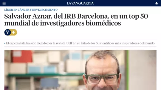 Dr. Salvador Aznar Benitah, Group Leadcer of the Stem Cells and Cancer laboratory at IRB Barcelona and ICREA Professor, has been selected as one of Cell Press's "50 Scientists that Inspire". This recognition comes as a result of his paradigm-shifting work in cancer metabolism and aging research.