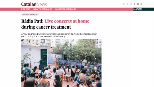 In October, we interviewed Anna Bacardit (1993), the young protagonist of RADIO PATI, a musical initiative aimed at raising funds to support the Metastasis Challenge. Anna, a breast cancer patient with metastasis, is a vibrant and inspiring woman. In this interview, she tells us how RADIO PATI came about and shares her experience with us in an open, sincere and natural way.