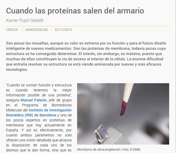 Excelenciencia.org has published an article that includes statements made by Manuel Palacín after the “Transporters and other Molecular Machines” conference, part of Barcelona Biomed Conferences, which is organised by IRB Barcelona with the support of the BBVA Foundation.