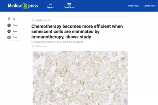 Research Programme (field_news_research_programme) All programmesAging and MetabolismCancer ScienceCore FacilitiesMechanisms of Disease Research Group (field_news_research_group) Media mentions9 Jun 2024 Eduard Batlle, el sabio del cáncer de colon: "No sabemos por qué aumenta en jóvenes, es dramático" - El Español Media mentions2 May 2024 El País - Synchronization between the body’s circadian clocks can prevent aging Media mentions2 May 2024 La Vanguardia - Spanish research reveals that eating at regular times prevents muscle deterioration with age Media mentions19 Mar 2024 El País - On the trail of cancer to understand how and when it originated Media mentions24 Jan 2024 Medical Xpress - Chemotherapy becomes more efficient when senescent cells are eliminated by immunotherapy, shows study Media mentions20 Jul 2023 Desarrollan inhibidores de una proteína relacionada con enfermedades cardíacas - La Vanguardia Media mentions20 Jul 2023 Descubren cómo se activa la toxicidad de la bacteria del cólera - Infobae Media mentions20 Jul 2023 Descobreixen que la proteïna IL-17 té un paper clau en l'envelliment de la pell - La Vanguardia Media mentions26 Jun 2023 El gen de la juventud de las moscas que es precursor de cáncer en mamíferos - El tiempo Pagination First page First Previous page < Page 1 Page 2 Page 3 Current page 4 Page 5 Page 6 Page 7 Page 8 Page 9 … Next page > Last page Last