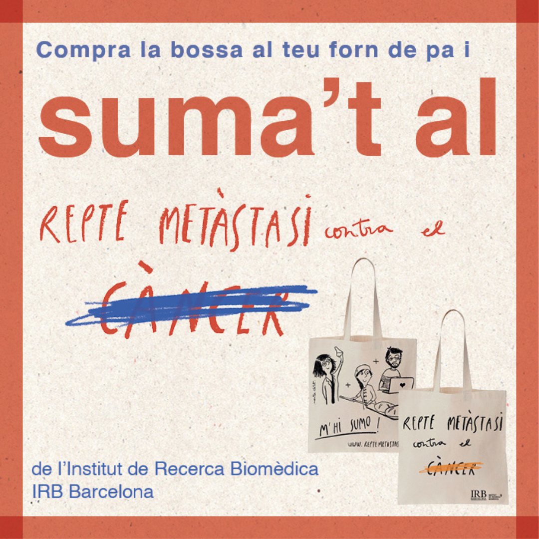 In December 2020, the illustrator Montse Clotet, a partner of IRB Barcelona's Metastasis Challenge, launched a fundraising campaign with the Barcelona Bakers' Guild, Empresàries Flequeres (Association of Women Bakers), Panàtics, and other professionals in the sector. For €6, customers of the bakeries that joined the initiative could purchase a fundraising tote bag, designed by the same illustrator, and thus support metastasis research conducted at IRB Barcelona.