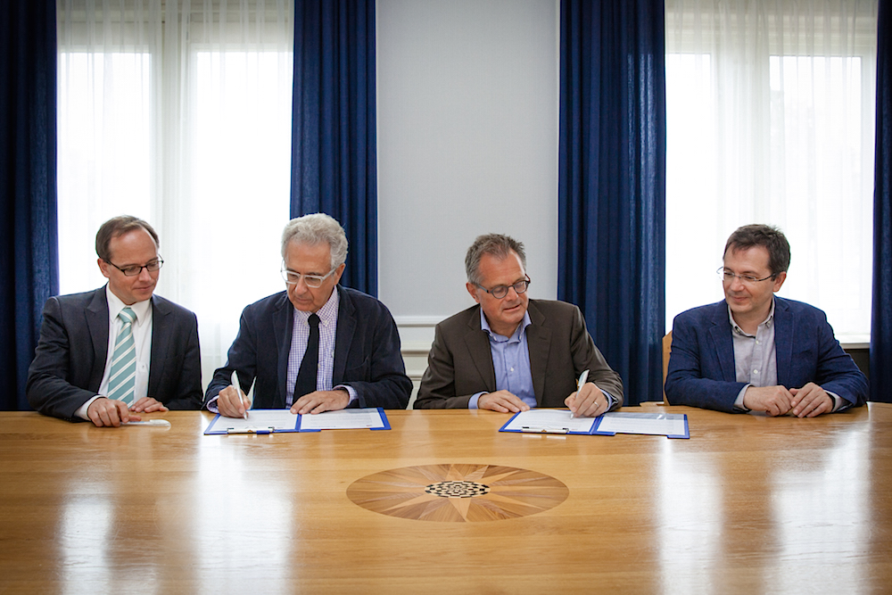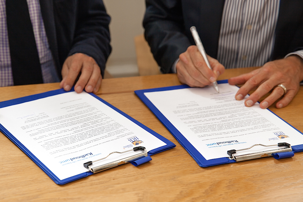 This month, IRB Barcelona and the Radboud Institute for Molecular Life Sciences (RIMLS), Nijmegen, the Netherlands, have signed collaboration agreements on research and training. The agreements pave the way to strengthen current exchanges between the two centres and to explore new collaboration opportunities. The signature took place in the Netherlands on 3 June between Joan J. Guinovart, director of IRB Barcelona, and Paul Smits, vice-president of RIMLS and member of its research committee. IRB Barcelona was also represented by Raúl Méndez, Chair of Postgraduate Training, and Patricia Nadal, Academic Coordinator.