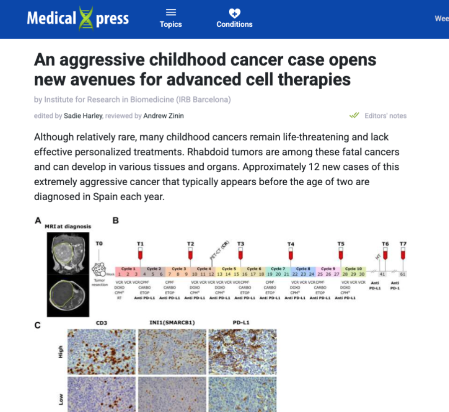 Medical Xpress - An aggressive childhood cancer case opens new avenues for advanced cell therapies