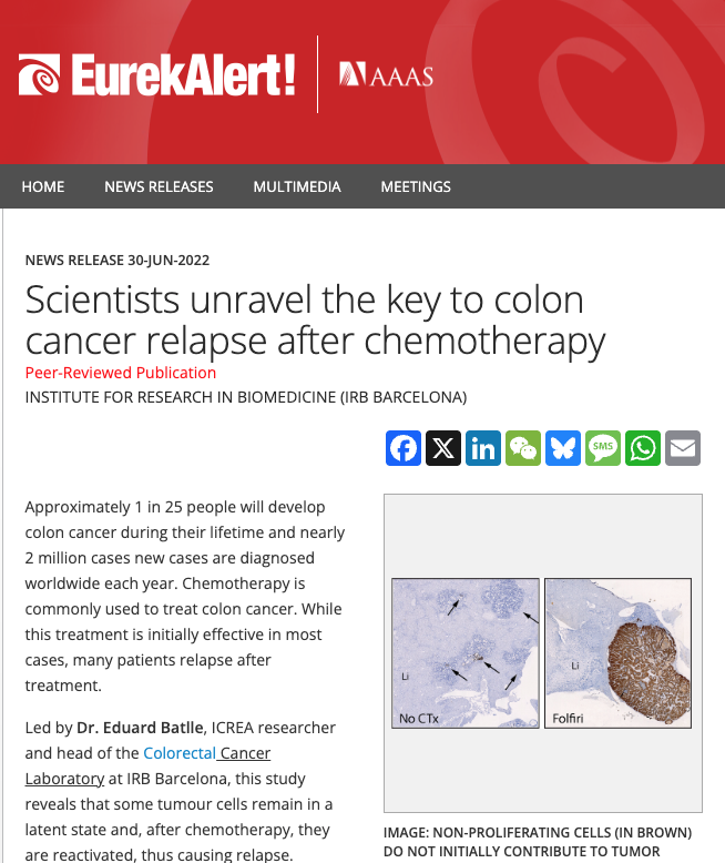 Scientists unravel the key to colon cancer relapse after chemotherapy