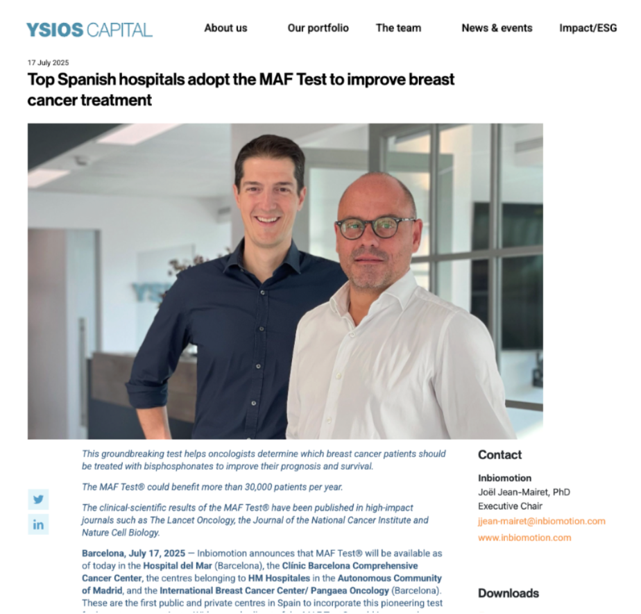 Ysios Capital - Top Spanish hospitals adopt the MAF Test to improve breast cancer treatment