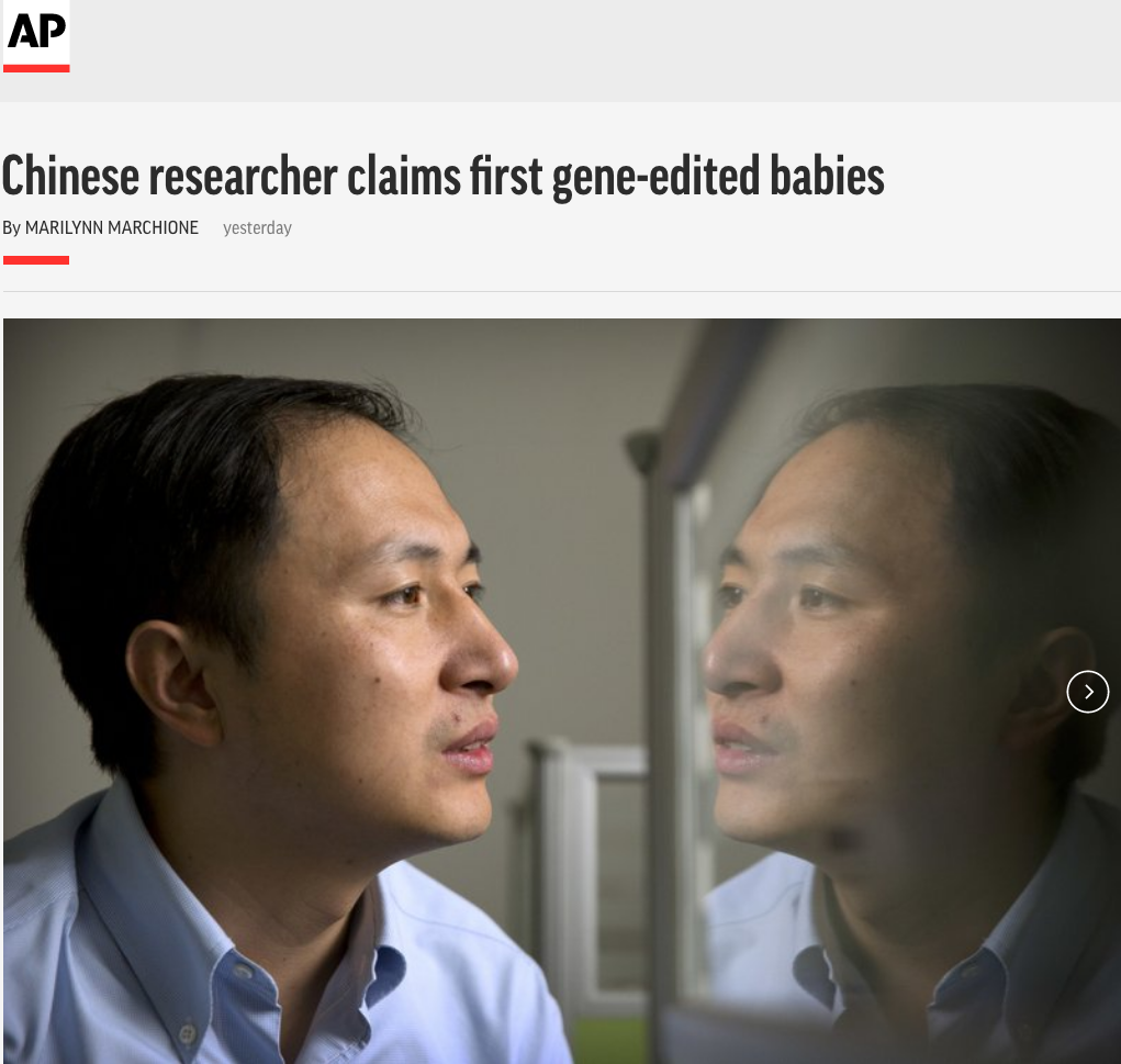The announcement made yesterday by the Chinese scientist He Jiankui that twins Lulu and Nana had been born after editing their DNA has brought about a storm of criticisms and generated alarm among the scientific community and society. (*Chinese researcher claims first gene-edited babies. Associated Press). The gene editing of embryos may become (or not) a reality in the future, but right now it is clearly premature.