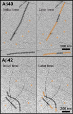 The team of researchers at IRB Barcelona has now characterized molecular recycling of two Aβ proteins, Aβ40 and Aβ42, the latter being the most associated with AD. After monitoring recycling during 40 days using hydrogen/deuterium exchange experiments, they found that Aβ40 and Aβ42 molecules recycle within the fibril population, although to different extents: after 40 days, 80 % of the molecules making up Aβ40 fibrils underwent recycling while only 30 % did so in Aβ42 fibrils. These observations imply that Aβ42 recycles more slowly.