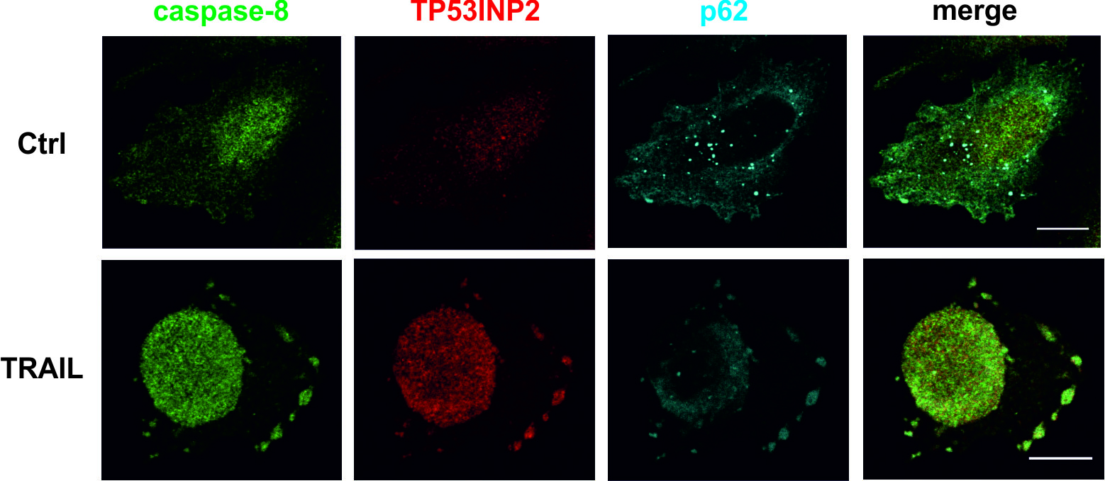 TRAIL holds great promise for the treatment of cancer because it can selectively induce the death of cancer cells. Since its discovery in 1995, many clinical assays have been devoted to this drug. However, not all patients with cancer respond to this treatment. Researchers at IRB Barcelona have confirmed the relation between high levels of TP53INP2 and an enhanced response of liver and breast cancer cells to TRAIL.