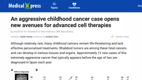 “Our findings highlight that studying each individual patient case in great depth can yield valuable insights that directly impact patient outcomes — even more so in cancers as rare and aggressive as rhabdoid tumours. Our focus was to identify what determines the response to ICI therapy in children, and our findings offer a real foundation for developing personalised immunotherapies for young patients who currently have very limited options", said Dr. Alexandra Avgustinova, Group Leader at IRB Barcelona and IRSJD, and co-corresponding author of the study.