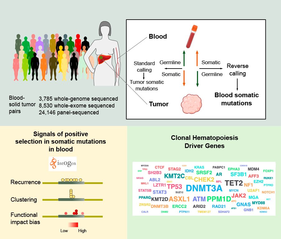 - The researchers have applied an innovative “reverse mutation calling” approach to data from 12,000 cancer patients to detect blood somatic mutations.