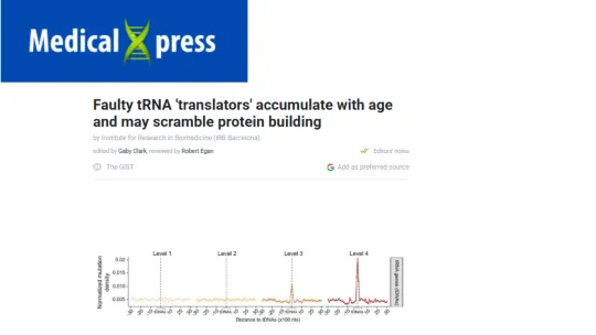 The discovery of these genetically programmed "translation errors" opens new avenues for exploring the biology of ageing. The team is now studying whether the generation of chimeric tRNAs accelerates over time and whether there are cellular mechanisms to compensate for this genetic chaos before it becomes irreversible.