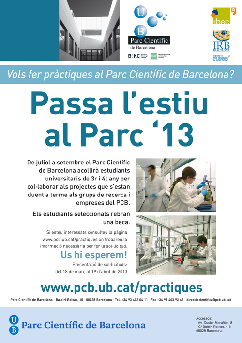 University students interested in spending the summer in a lab at IRB Barcelona are invited to send their applications to participate in the programme “Spend the summer at the Park!”, organized by Barcelona Science Park (PCB). The deadline is April 19.