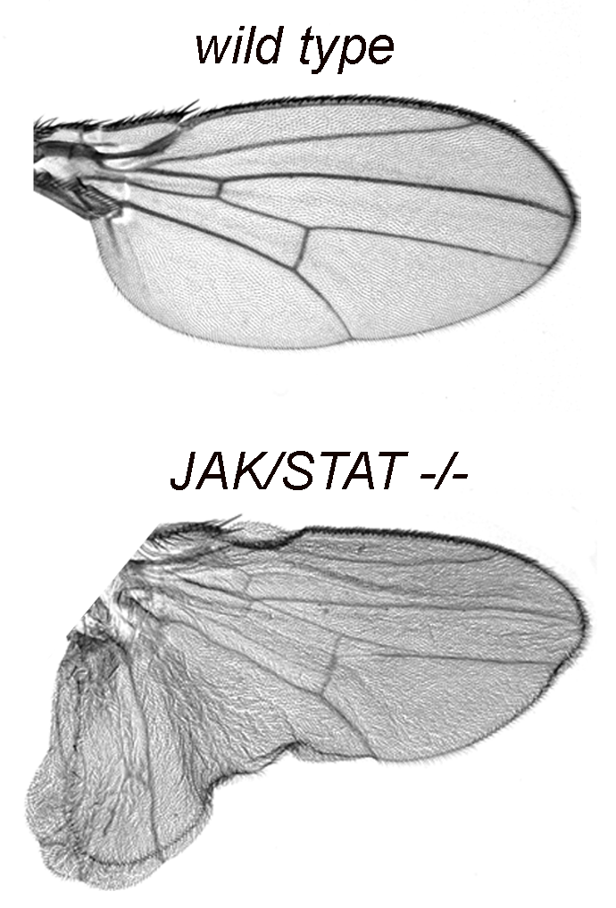 This work has identified three defined functions of JAK/STAT in fly development. First, it cooperates with Wingless (Wnt in humans) to specify where the wing will develop. Second, it helps cells that produce Hedgehog (Sonic hedgehog in humans) to survive and proliferate in order to induce the expression of Dpp (BMP in humans), a molecule that organises the patterning and growth of the whole wing. And third, it delimits the action of Dpp so that the wing grows in the right place.