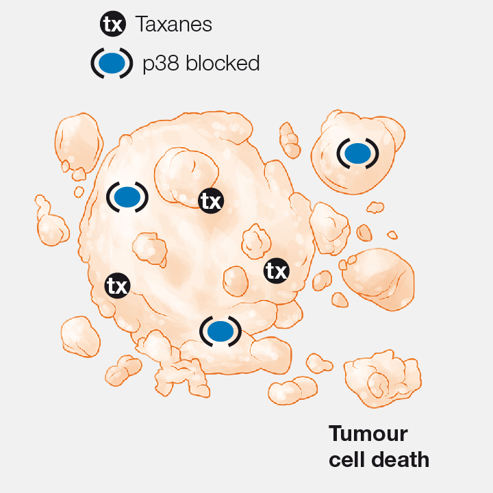 p38 blockage has been shown to increase the death of tumour cells, thus causing tumours to shrink.