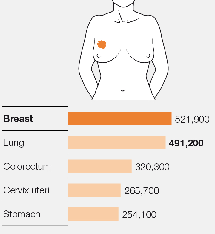 Causes of deaths from cancer among women in 2012 (worldwide)