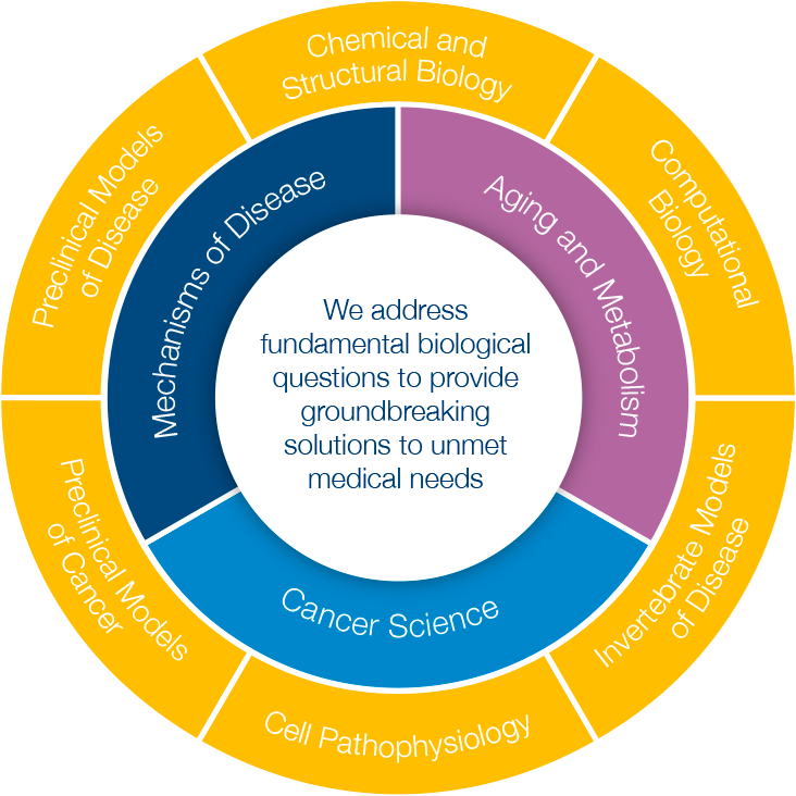 Our institute is organised around three major research challenges, namely Cancer Science, Aging and Metabolism, and Mechanisms of Disease, with the aim to decipher why diseases develop and find new ways to diagnose, prevent and treat them.
