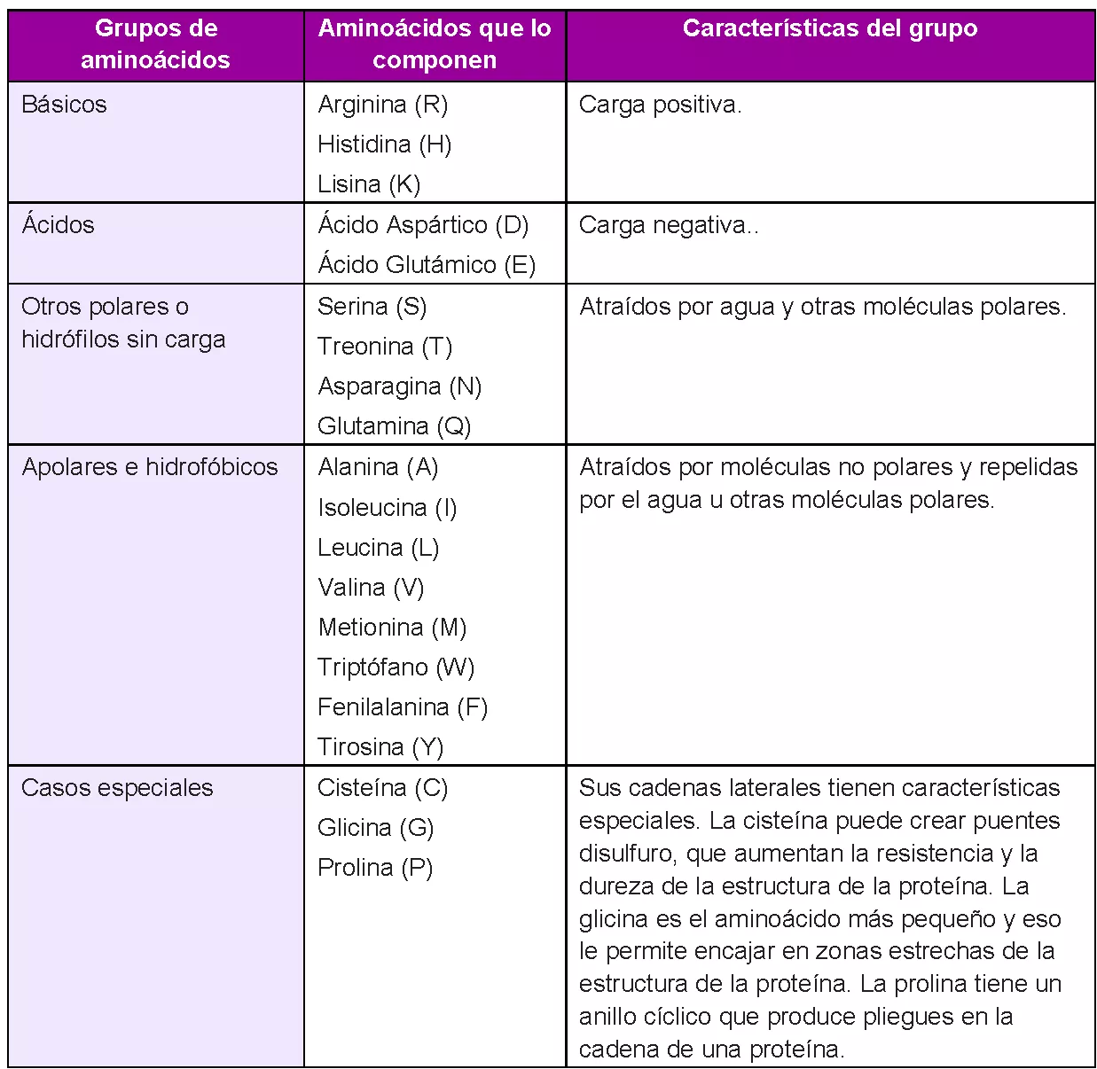 Explicación: en función de las cadenas laterales de los aminoácidos, y sus propiedades químicas, los aminoácidos se clasifican en diferentes grupos. Dentro de cada grupo, los aminoácidos que forman parte son lo que se llaman aminoácidos similares, ya que sus propiedades son similares, por eso se encuentran en el mismo grupo. Como sea, esta cadena lateral tiene una importancia clave a la hora del plegamiento y conformación de las proteínas. Debido a las interacciones que puedan darse entre las cadenas laterales de aminoácidos cuando la proteína esté plegada, la posición de los aminoácidos en la secuencia determinará su conformación final. Por eso, los cambios de aminoácidos pueden afectar más o menos a la estructura final de la proteína. Si cambiamos un aminoácido por otro del mismo grupo, puede no alterar la conformación en 3D, puesto que tienen las mismas características (o similares). Fuente de información: artículo de la revista Nature.