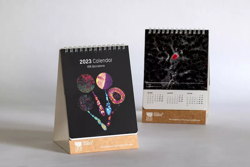 Calendario solidario con imágenes científicas obtenidas por los investigadores e investigadoras del IRB Barcelona