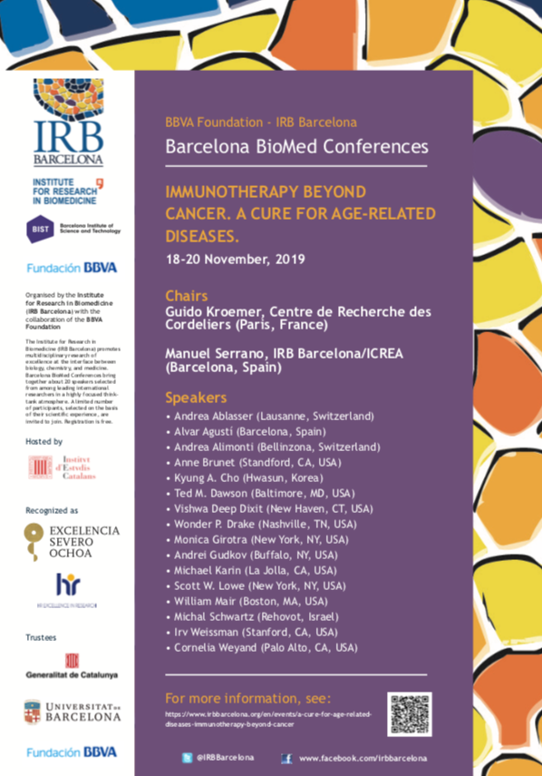 There is no registration fee for this conference, but the number of participants is limited, with a number of seats saved for IRB Barcelona alumni. Previous registration is required.