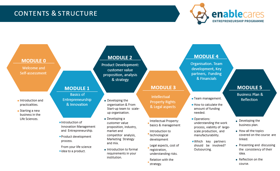 ENABLECARES ENTREPRENEURSHIP COURSE is a joint initiative of four leading biomedical research institutes (IRB Barcelona, Radboudumc, SEMM and CPR). More informatioin in the project website: https://enablecares.eu/