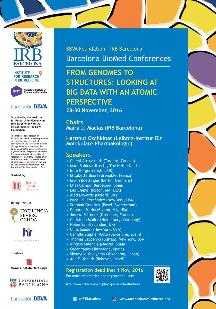 In this Barcelona BioMed Conference we plan to combine presentations on Genome-wide and Systems Biology approaches with advances in Structural Biology applied to complex systems. Recent developments in these fields will be discussed by speakers and participants from diverse backgrounds who share an interest in understanding and visualizing protein function in health and disease.