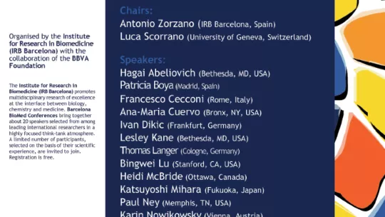 This conference gathers together some of the major contributors to the development of two relevant fields, i.e., autophagy and mitochondrial dynamics. Current ideas and future avenues of research in a multidisciplinary, think-tank atmosphere will be analyzed.