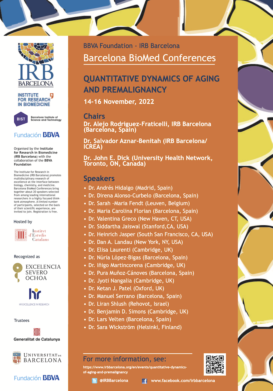 The BARCELONA BIOMED CONFERENCE Quantitative dynamics of aging and premalignancy will be placed at the Casa Convalescència in the heart of Barcelona. Talks will take place in the Aula Magna.