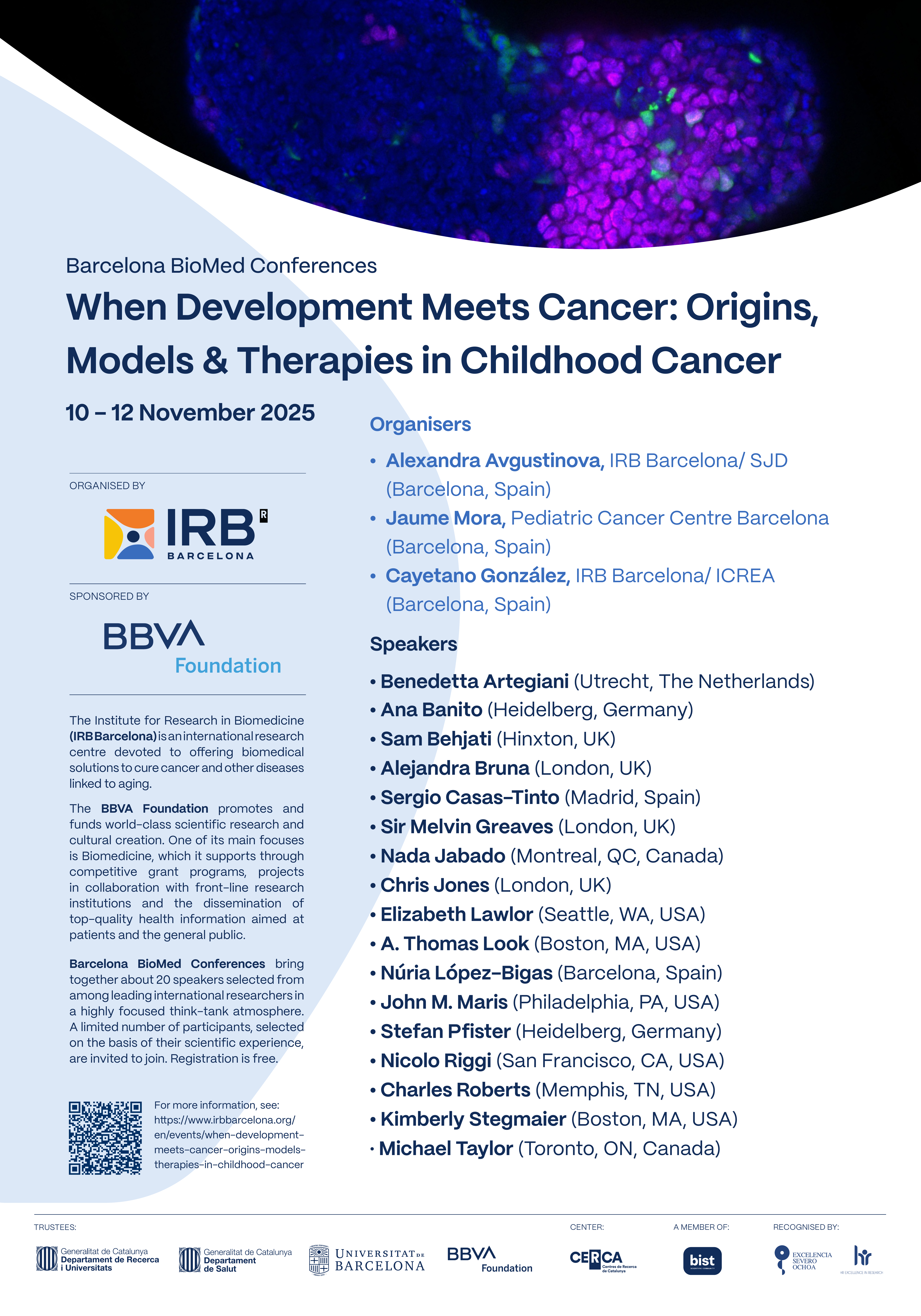 The BARCELONA BIOMED CONFERENCE When Development Meets Cancer: Origins, Models & Therapies in Childhood Cancer will be placed at the Recinte Modernista de Sant Pau in Barcelona.