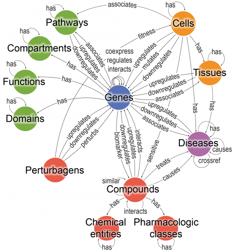 La Bioteque funciona integrando distintos niveles de complejidad biológica y así puede reportar, por ejemplo, sobre dos genes que están relacionados, si interaccionan físicamente, si son activos en el mismo tipo de células, si están relacionados con la misma enfermedad. O bien, podría predecir la sensibilidad o resistencia de un tipo de células ante un fármaco concreto.