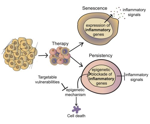 Las terapias anticancerígenas no siempre logran eliminar por completo las células tumorales. Algunas de estas células adoptan un estado de senescencia, un estado de latencia, en el que no se dividen, y que es generalmente irreversible. Otras, sin embargo, entran en un estado conocido como “persistencia”, en el que el estado de latencia es temporal y reversible, permitiendo a las células reactivar su crecimiento, una vez el tratamiento ha finalizado, provocando la reaparición del cáncer.